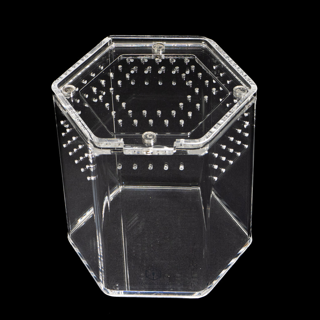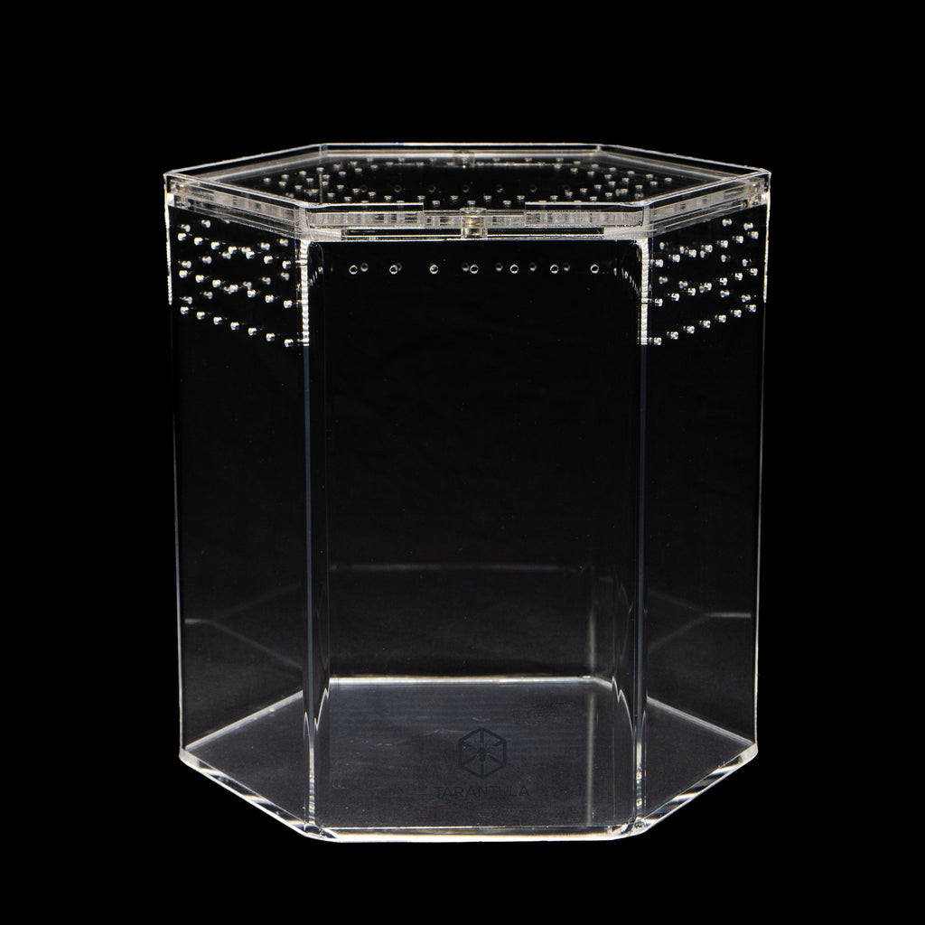 Discover the perfect blend of style and practicality with our 5-Inch Hexagon enclosure. This compact, eye-catching habitat is crafted from high-quality acrylic, designed to be both a functional and fashionable home for your arachnid friends.