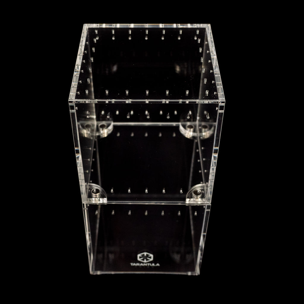 The Canopy Understory Flat Top offers a unique mid-opening design that allows easy access while preserving the delicate webbing of top webbers. With its modern, clean aesthetic and functional features, it provides a perfect habitat for arachnids that prefer vertical space and intricate web structures.