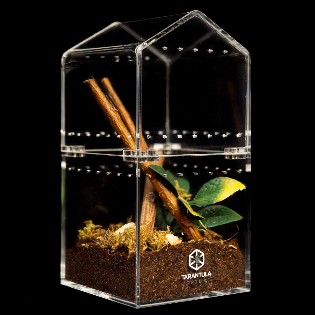 Our 3x3x6 Enclosure features a unique roof shape and middle-opening design, perfect for accommodating the specific needs of jumpers and top webbers. With its angled roof and strategic ventilation, it offers a comfortable and secure habitat for your arachnid companions.