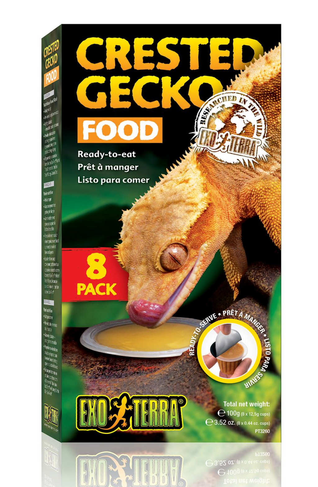 Each single serve cup provides the optimal amount of food for your geckos, which prevents desiccation and spoiling, and prohibits Crested Geckos from tracking excess food throughout the terrarium. The convenient serving cups fit perfectly in decorative items like the Exo Terra Kanak Tribal Ornament or the Exo Terra Canopy Combo Dish.