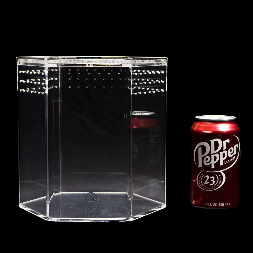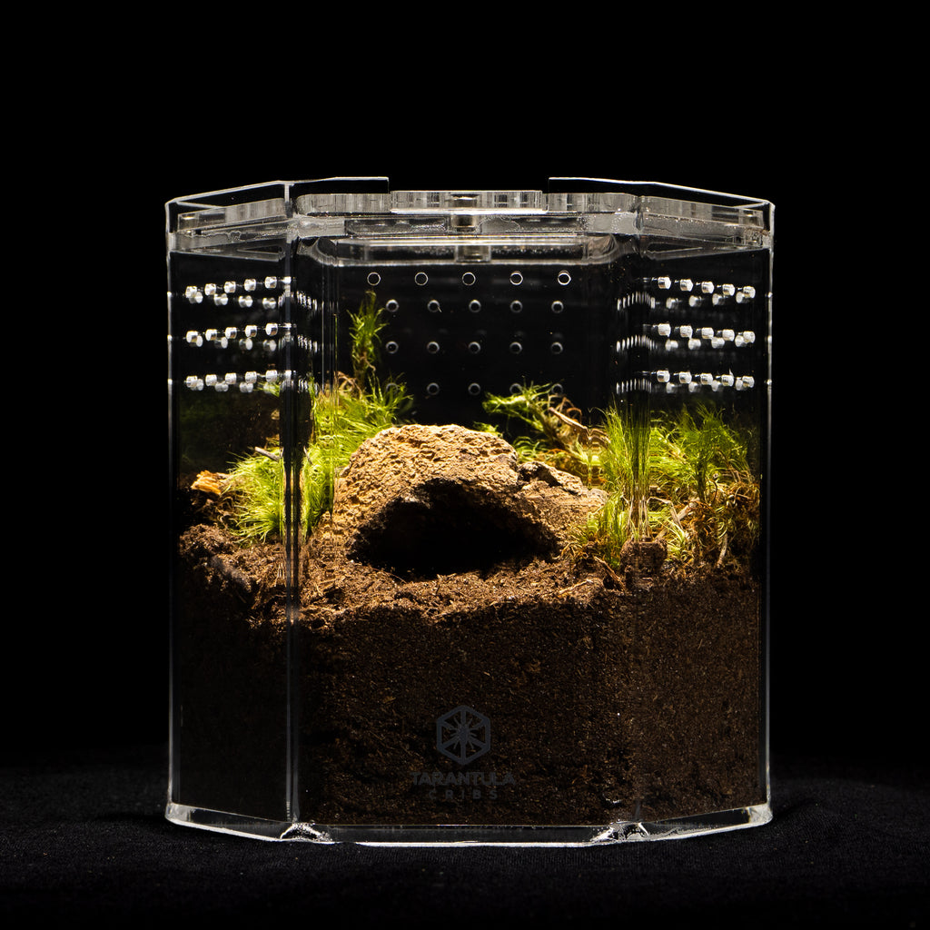 Introducing the Hexagon Enclosure – a groundbreaking design from Tarantula Cribs that offers a unique and versatile habitat for your tarantulas and other small critters. Available in both 5-inch and 8-inch sizes, this enclosure is perfect for both arboreal and fossorial setups.
