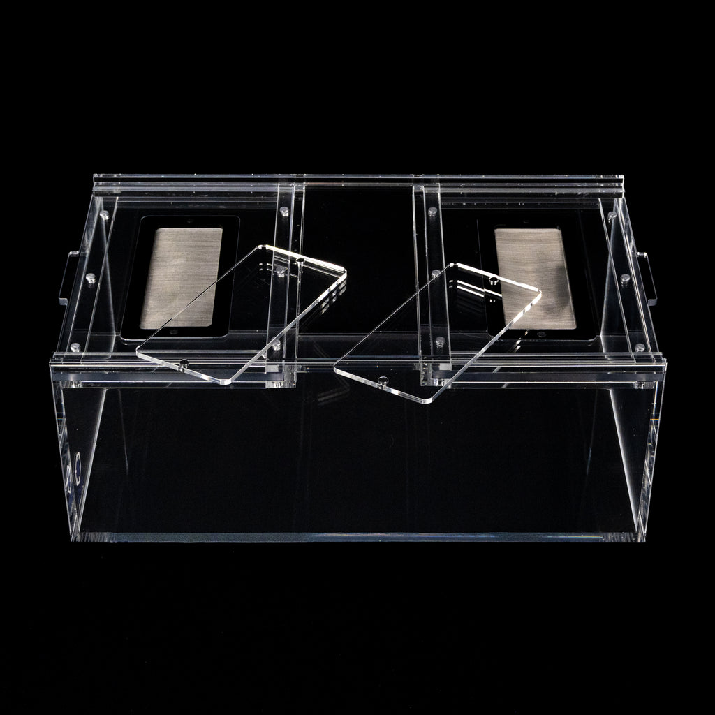 Built from premium acrylic and featuring a modular dual sliding lid system, this enclosure delivers unmatched climate control, accessibility, and escape prevention.