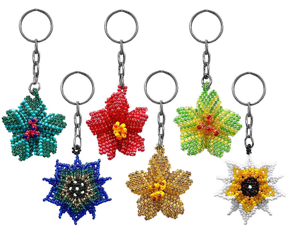 Pichincha - Beaded Assorted Flower Seed Bead Figurine Keychain