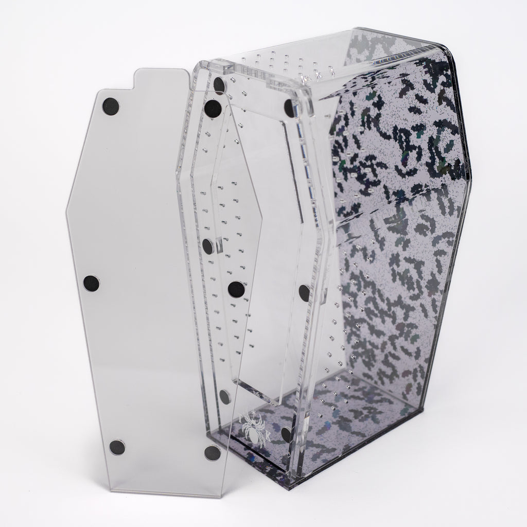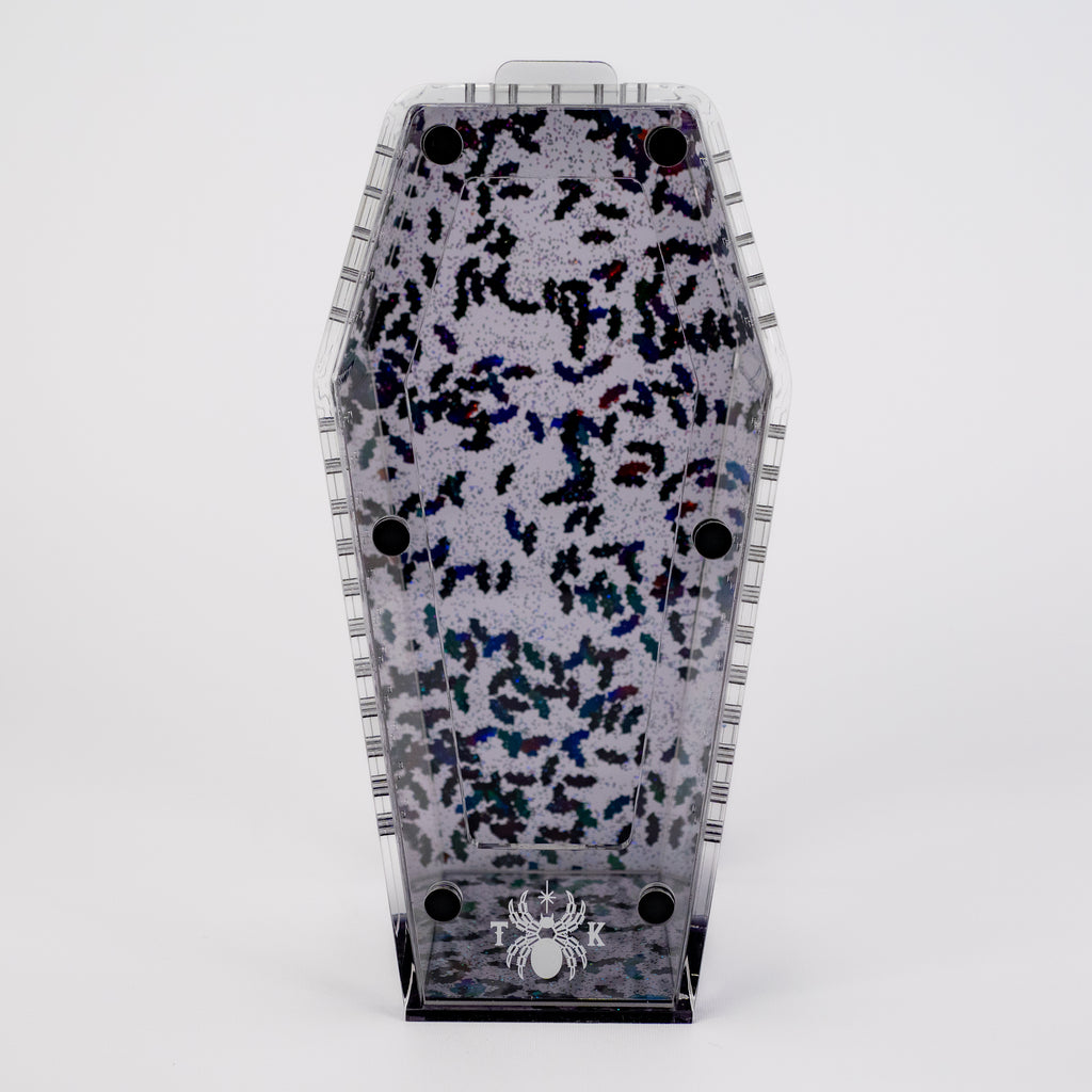 Introducing the Gone Batty Coffin Crib, a hauntingly exclusive collaboration with the one and only Tarantula Kat! This special edition enclosure is designed for the true arachnid fan looking to add a touch of spooky elegance to their collection.