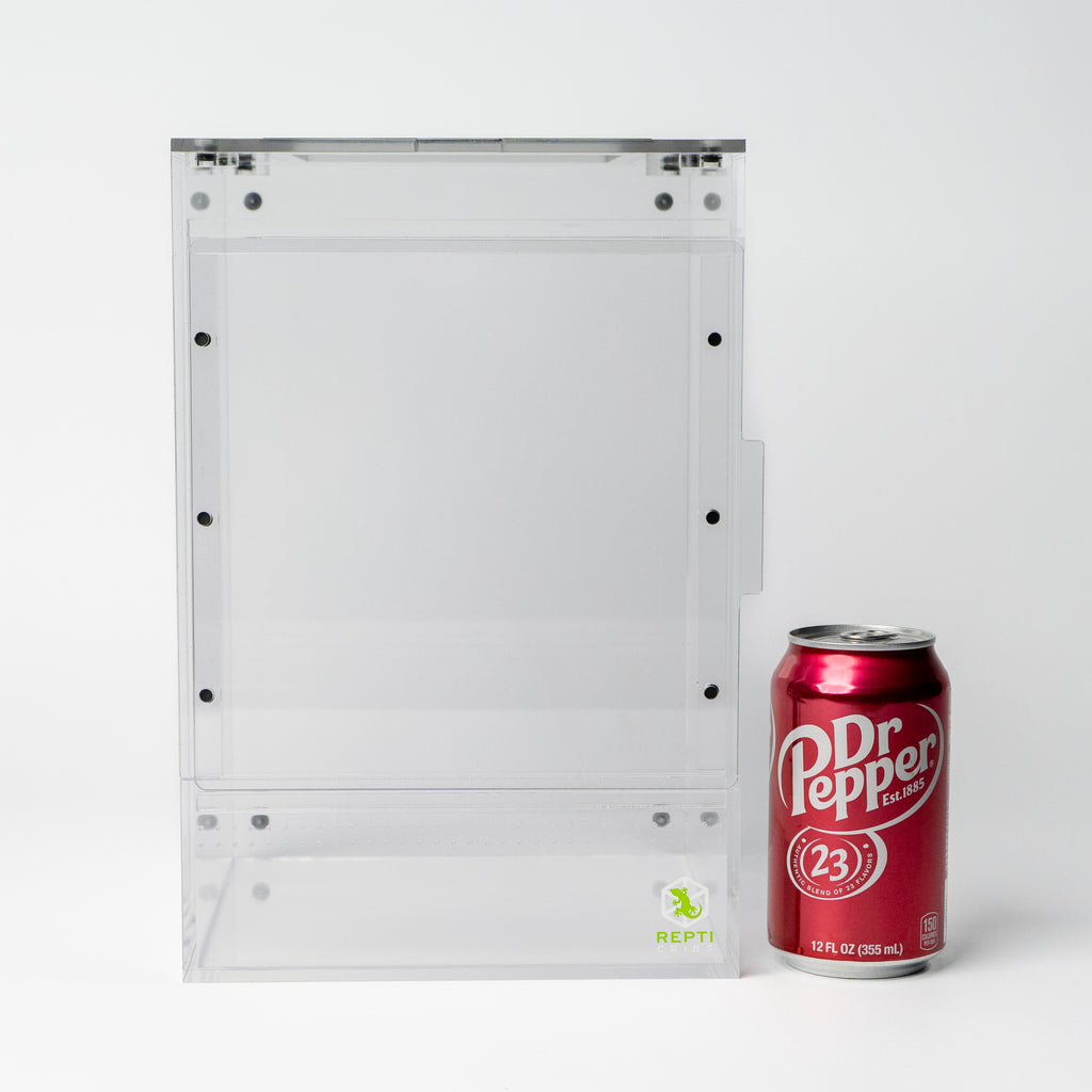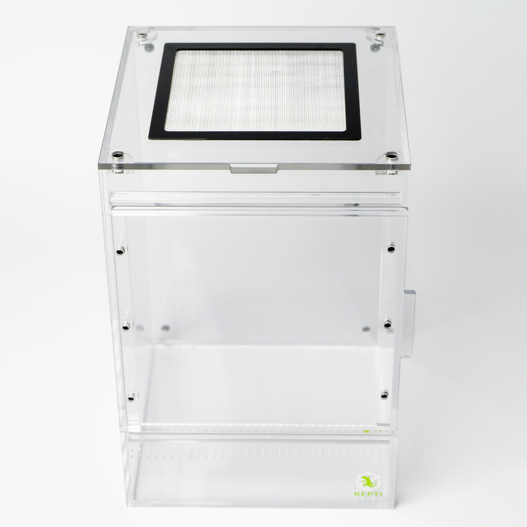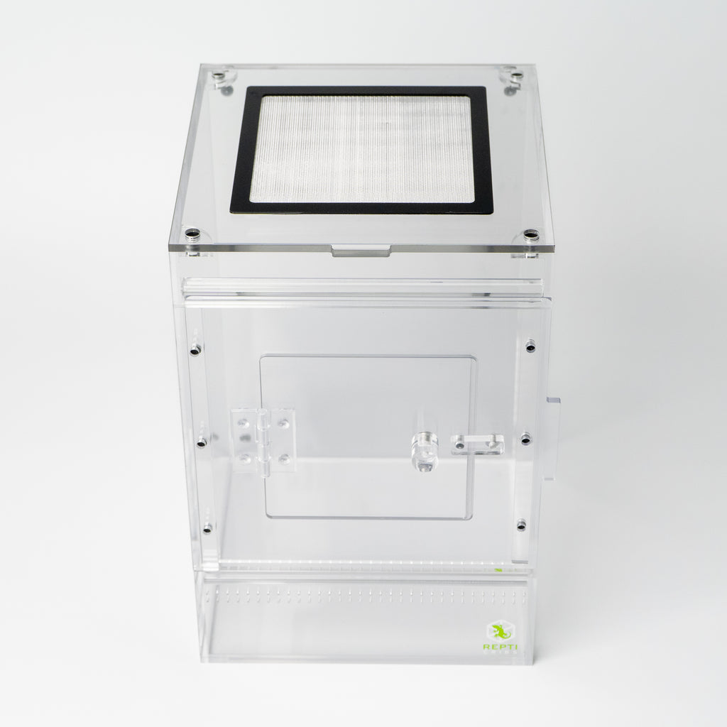 The removable top lid provides unrestricted access for feeding, misting, and habitat maintenance. Premium acrylic construction ensures crystal-clear visibility and lasting durability.
