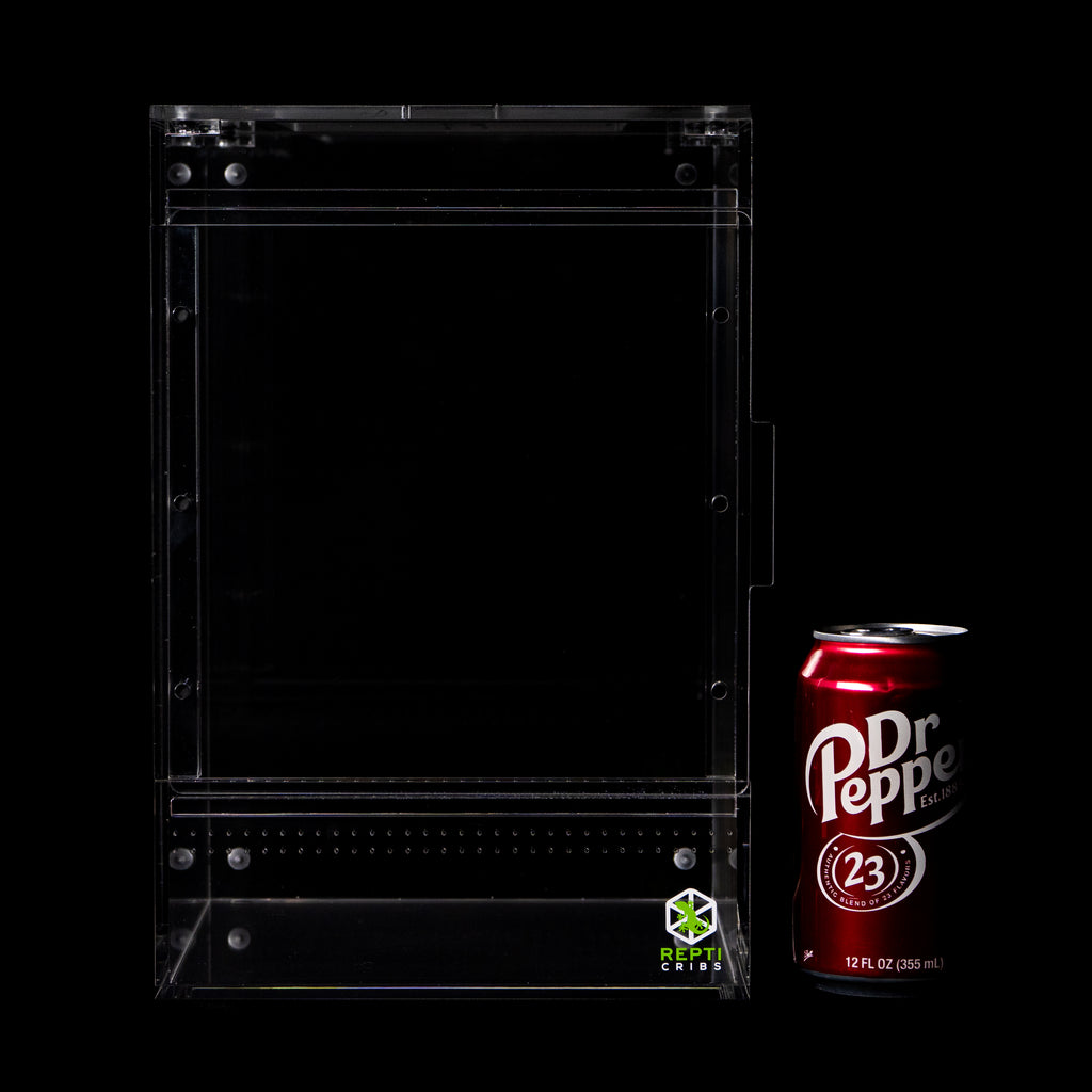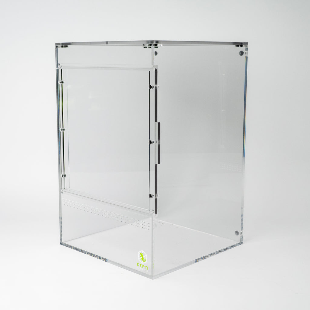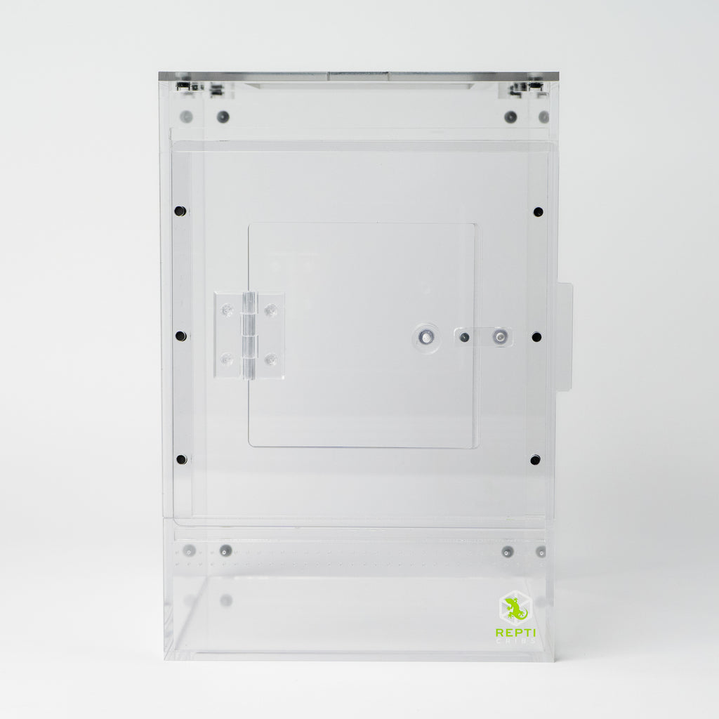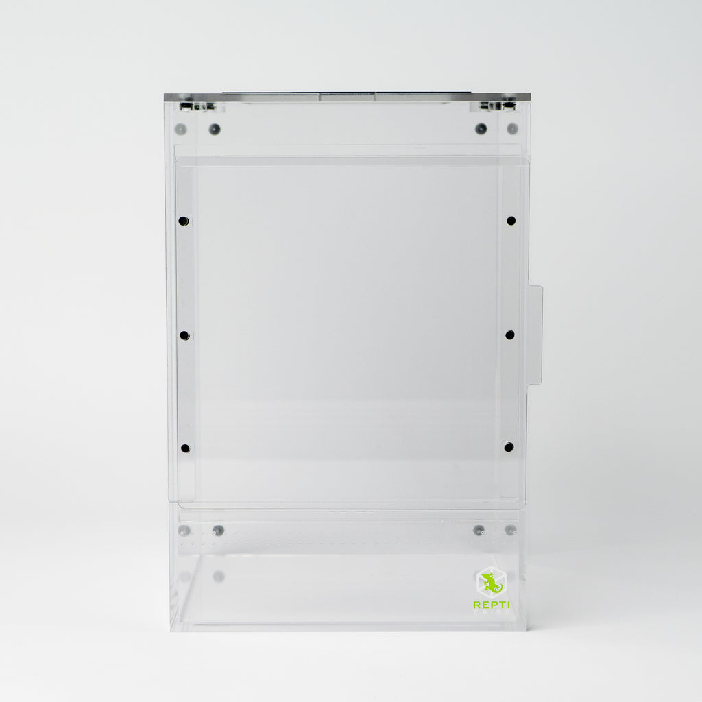 The removable top lid provides unrestricted access for feeding, misting, and habitat maintenance. Premium acrylic construction ensures crystal-clear visibility and lasting durability.