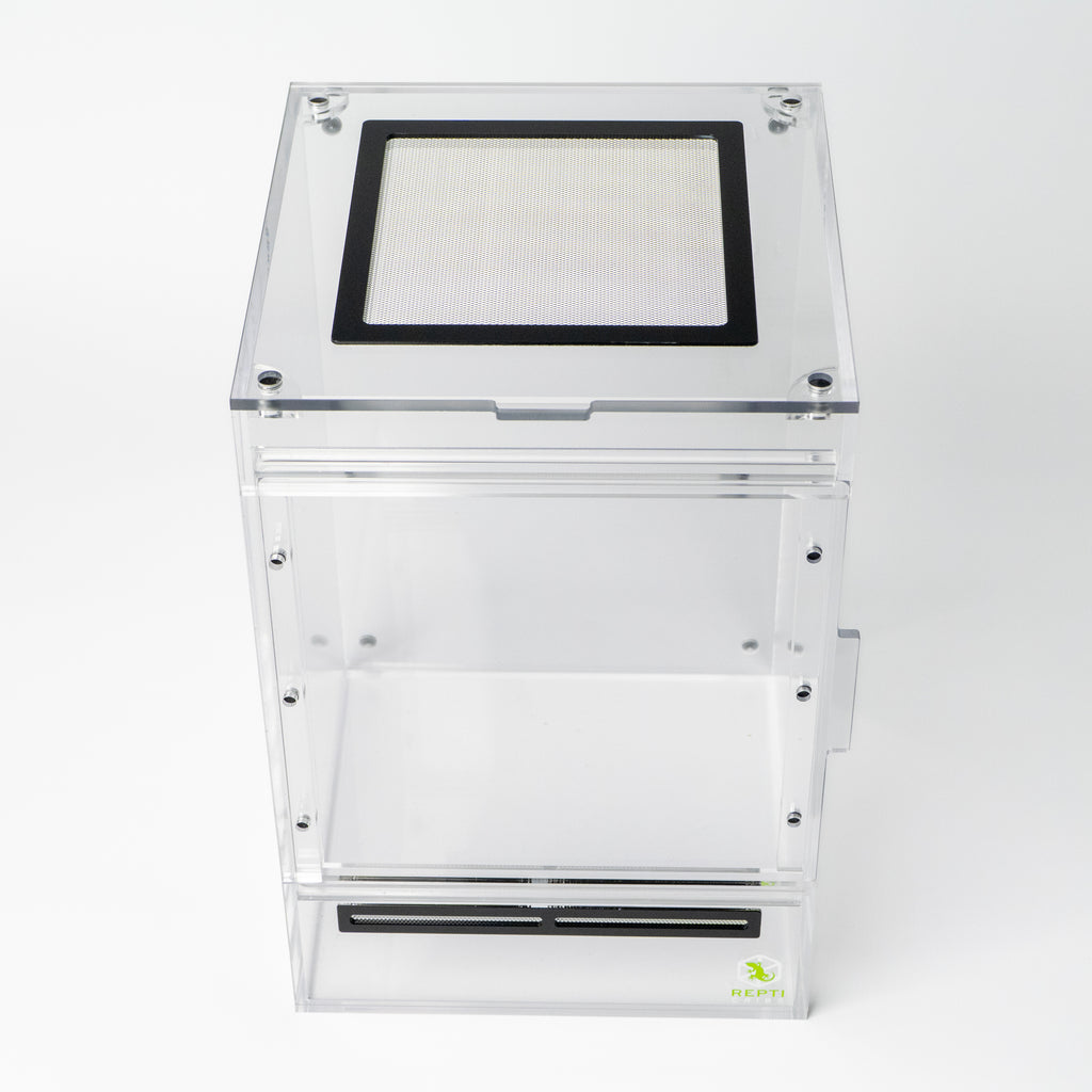 Choose between precision-cut acrylic holes or aluminum mesh bottom ventilation to keep your cleanup crew secure. The design supports thriving populations of springtails and isopods while maintaining proper substrate conditions.