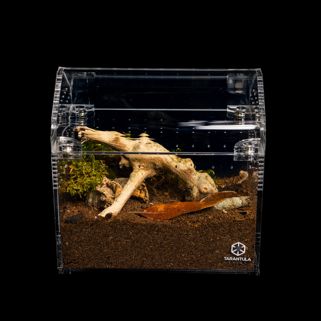 [{"id":487727169841,"handle":"all-products","updated_at":"2025-11-12T06:24:10-06:00","published_at":"2024-05-29T23:16:47-05:00","sort_order":"best-selling","template_suffix":null,"published_scope":"web","title":"All Products","body_html":"\u003cp\u003e\u003c\/p\u003e","image":{"created_at":"2024-05-29T23:16:53-05:00","alt":null,"width":1538,"height":920,"src":"\/\/tarantulacribs.com\/cdn\/shop\/collections\/70671a9e9bac72b4464067375bac7b51.jpg?v=1717042613"}},{"id":521720430897,"handle":"cuboid-enclosures","updated_at":"2025-11-12T06:24:10-06:00","published_at":"2025-10-31T04:39:57-05:00","sort_order":"best-selling","template_suffix":"","published_scope":"global","title":"Cuboid Enclosures","body_html":"\u003ch3 data-start=\"188\" data-end=\"237\"\u003e\u003cstrong data-start=\"195\" data-end=\"235\"\u003eCuboid Enclosures by Tarantula Cribs\u003c\/strong\u003e\u003c\/h3\u003e\n\u003cp data-start=\"238\" data-end=\"753\"\u003eOur Cuboid Enclosures are premium terrestrial habitats crafted from thick, crystal-clear acrylic for unmatched clarity and durability. Featuring snap-on, snap-off lids, these enclosures offer complete versatility — remove the lid from any direction or swap it out for different ventilation variants. Loved by keepers who prefer the ease and flexibility of snap-off designs over sliding lids, Cuboids deliver a high-end, customizable experience perfect for tarantulas, scorpions, and other ground-dwelling species.\u003c\/p\u003e","image":{"created_at":"2025-10-31T04:39:56-05:00","alt":null,"width":3795,"height":3795,"src":"\/\/tarantulacribs.com\/cdn\/shop\/collections\/file_85473807-a3b7-4cb1-b67d-0a81090b8519.jpg?v=1761903596"}},{"id":487727464753,"handle":"enclosures","updated_at":"2025-11-12T06:24:10-06:00","published_at":"2024-05-29T23:16:49-05:00","sort_order":"best-selling","template_suffix":null,"published_scope":"web","title":"Enclosures","body_html":"\u003cp\u003e\u003c\/p\u003e","image":{"created_at":"2024-05-29T23:17:10-05:00","alt":null,"width":3645,"height":3645,"src":"\/\/tarantulacribs.com\/cdn\/shop\/collections\/3309a0bd560c9ea6aa530c88435b39e6.jpg?v=1717042630"}},{"id":521721905457,"handle":"enclosures-for-grammostola-brachypelma-aphonopelma","updated_at":"2025-11-12T06:24:10-06:00","published_at":"2025-10-31T05:02:32-05:00","sort_order":"best-selling","template_suffix":"","published_scope":"global","title":"Enclosures for Grammostola, Brachypelma \u0026 Aphonopelma","body_html":"\u003cp data-start=\"252\" data-end=\"727\"\u003ePerfect for New World terrestrial tarantulas like \u003cem data-start=\"302\" data-end=\"315\"\u003eGrammostola\u003c\/em\u003e, \u003cem data-start=\"317\" data-end=\"330\"\u003eBrachypelma\u003c\/em\u003e, and \u003cem data-start=\"336\" data-end=\"349\"\u003eAphonopelma\u003c\/em\u003e species, these enclosures are built for stability, comfort, and visibility. Each setup provides deep substrate space for burrowing, secure ventilation for ideal airflow, and front-opening access that won’t disturb delicate webbing or tunnels. Crafted from premium acrylic, they’re designed to showcase your tarantula beautifully while maintaining optimal humidity and safety.\u003c\/p\u003e\n\u003cp data-start=\"729\" data-end=\"1096\"\u003e\u003cstrong data-start=\"729\" data-end=\"749\"\u003eChoosing a Size:\u003c\/strong\u003e\u003cbr data-start=\"749\" data-end=\"752\"\u003eJuvenile tarantulas typically thrive in medium enclosures that allow for easy feeding and observation, while adults prefer larger setups with room for deep substrate and natural movement. A good rule of thumb is an enclosure two to three times the spider’s leg span in width, with enough depth for burrowing species to create secure retreats.\u003c\/p\u003e","image":{"created_at":"2025-10-31T05:02:31-05:00","alt":null,"width":3918,"height":3918,"src":"\/\/tarantulacribs.com\/cdn\/shop\/collections\/file_8b835741-c309-47b4-9655-a904c1c1f0b3.jpg?v=1761904951"}},{"id":521723216177,"handle":"enclosures-for-isopids","updated_at":"2025-11-12T06:24:10-06:00","published_at":"2025-10-31T05:45:27-05:00","sort_order":"best-selling","template_suffix":"","published_scope":"global","title":"Enclosures for Isopods and Millipedes","body_html":"\u003cp data-start=\"247\" data-end=\"602\"\u003eOur isopod enclosures are designed for stability, moisture retention, and visibility — perfect for hobbyists breeding or displaying species like \u003cem data-start=\"392\" data-end=\"403\"\u003ePorcellio\u003c\/em\u003e, \u003cem data-start=\"405\" data-end=\"420\"\u003eArmadillidium\u003c\/em\u003e, and \u003cem data-start=\"426\" data-end=\"435\"\u003eCubaris\u003c\/em\u003e. Each unit is built from durable, crystal-clear acrylic with adjustable ventilation options to help you fine-tune humidity for tropical, temperate, or arid species.\u003c\/p\u003e\n\u003cp data-start=\"604\" data-end=\"957\"\u003e\u003cstrong data-start=\"604\" data-end=\"632\"\u003eChoosing a Size \u0026amp; Setup:\u003c\/strong\u003e\u003cbr data-start=\"632\" data-end=\"635\"\u003eIsopods thrive in enclosures that balance airflow and moisture. Smaller colonies do well in compact setups with cross-ventilation, while breeding groups or display colonies benefit from larger enclosures with deep substrate layers and moss zones. Include leaf litter, cork bark, and hides for both nutrition and shelter.\u003c\/p\u003e\n\u003cp data-start=\"959\" data-end=\"1272\"\u003e\u003cstrong data-start=\"959\" data-end=\"974\"\u003eKeeper Tip:\u003c\/strong\u003e\u003cbr data-start=\"974\" data-end=\"977\"\u003eProvide a \u003cstrong data-start=\"987\" data-end=\"1016\"\u003emoist area and a dry area\u003c\/strong\u003e to allow isopods to self-regulate humidity levels. A bioactive substrate mix of soil, moss, and decayed wood supports healthy molting and reproduction. For best results, avoid excessive airflow — isopods depend on a stable, humid microclimate to thrive.\u003c\/p\u003e","image":{"created_at":"2025-10-31T05:45:26-05:00","
