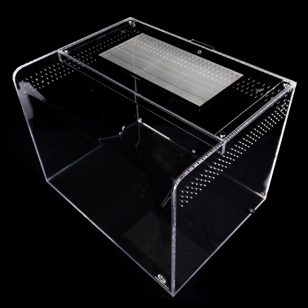 Introducing the Terra-Curve, our biggest enclosure yet! Crafted with ultra-clear, high-quality altered acrylic, this enclosure offers unparalleled clarity and durability for keepers of the largest arachnids, reptiles, and amphibians. Whether you’re housing a massive Goliath bird-eating tarantula or small reptiles like dark frogs or amphibians, the Terra-Curve provides a spacious and customizable environment for your pet. Comes with standard acrylic lid