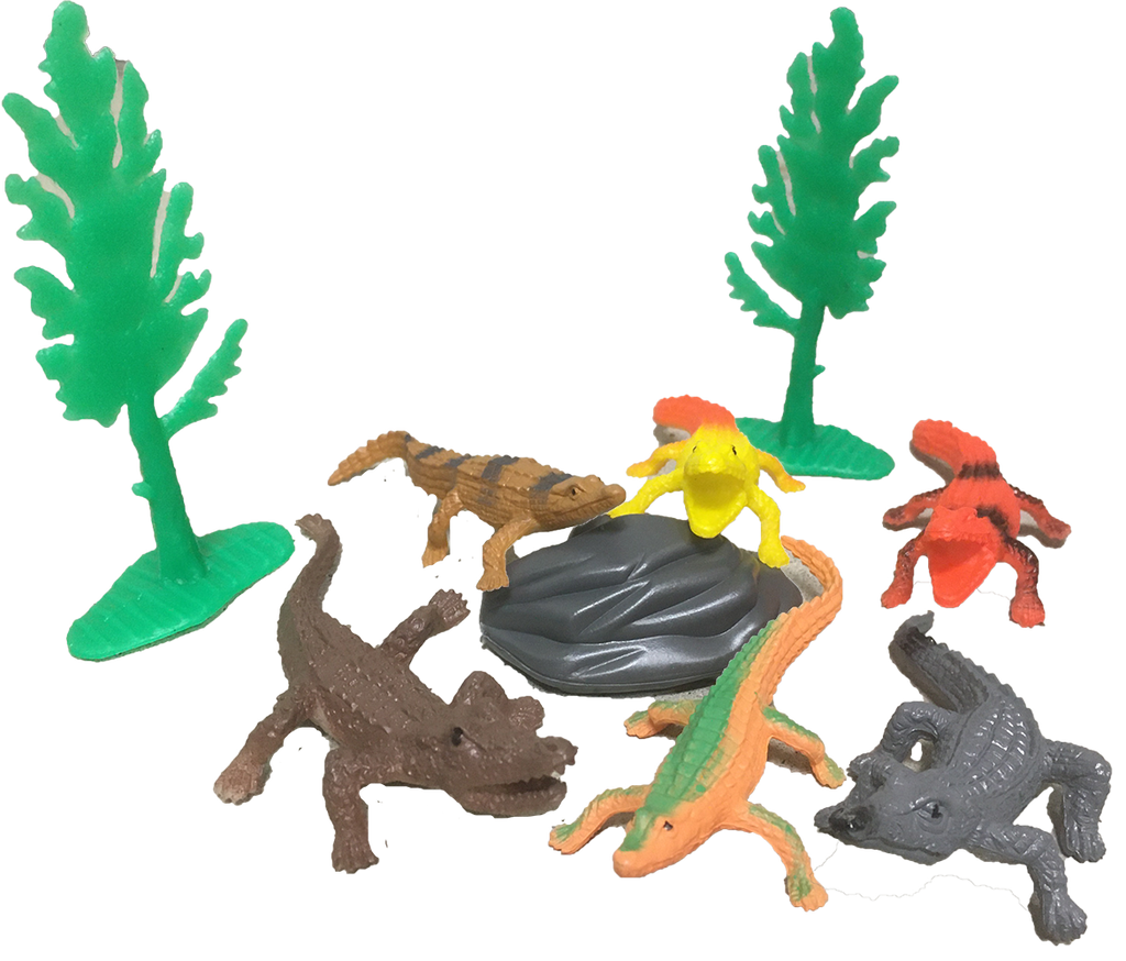 Classic crocodile animal figurines! This adorable tube includes 15 animal figurines in it and x3 landscape pieces (trees and rock). To put this item a head above similar tubes we have a Reptile Head top on the tube!