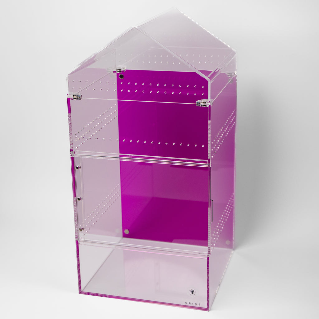 [{"id":521719972145,"handle":"adult-large-spider-enclosures","updated_at":"2025-11-03T06:21:24-06:00","published_at":"2025-10-31T04:27:07-05:00","sort_order":"best-selling","template_suffix":"","published_scope":"global","title":"Adult \/ Large Spider Enclosures","body_html":"\u003cp\u003e\u003cspan\u003eDesigned for adult tarantulas and larger arboreal or terrestrial species, these spacious enclosures combine strength, ventilation, and visibility. Featuring easy access doors and professional-grade acrylic, they make the perfect long-term home for display or breeding setups.\u003c\/span\u003e\u003c\/p\u003e","image":{"created_at":"2025-10-31T04:27:06-05:00","alt":null,"width":3918,"height":3918,"src":"\/\/tarantulacribs.com\/cdn\/shop\/collections\/file_841880e9-b409-48d0-b7d8-5ca4aeb79aa8.jpg?v=1761902827"}},{"id":487727169841,"handle":"all-products","updated_at":"2025-11-03T06:21:24-06:00","published_at":"2024-05-29T23:16:47-05:00","sort_order":"best-selling","template_suffix":null,"published_scope":"web","title":"All Products","body_html":"\u003cp\u003e\u003c\/p\u003e","image":{"created_at":"2024-05-29T23:16:53-05:00","alt":null,"width":1538,"height":920,"src":"\/\/tarantulacribs.com\/cdn\/shop\/collections\/70671a9e9bac72b4464067375bac7b51.jpg?v=1717042613"}},{"id":487727268145,"handle":"arboreal-enclosures-1","updated_at":"2025-11-03T06:21:24-06:00","published_at":"2024-05-29T23:16:47-05:00","sort_order":"best-selling","template_suffix":"","published_scope":"web","title":"Arboreal Enclosures","body_html":"\u003cp data-start=\"0\" data-end=\"54\"\u003e\u003cstrong data-start=\"0\" data-end=\"52\"\u003eArboreal Enclosures – Built for Climbing Species\u003c\/strong\u003e\u003c\/p\u003e\n\u003cp data-start=\"56\" data-end=\"438\" data-is-last-node=\"\"\u003eOur \u003cstrong data-start=\"60\" data-end=\"83\"\u003eArboreal Enclosures\u003c\/strong\u003e are designed for species that thrive off the ground! Featuring \u003cstrong data-start=\"147\" data-end=\"184\"\u003etall, vertically oriented designs\u003c\/strong\u003eand \u003cstrong data-start=\"189\" data-end=\"220\"\u003eoptimized cross ventilation\u003c\/strong\u003e, these enclosures provide the perfect environment for arboreal tarantulas, jumping spiders, and other climbing species. With secure access and superior airflow, they support natural webbing, perching, and exploration.\u003c\/p\u003e\n\u003cp data-start=\"56\" data-end=\"438\" data-is-last-node=\"\"\u003e\u003cem\u003ePro tip: add \u003ca href=\"https:\/\/tarantulacribs.com\/collections\/extension-tubes\" target=\"_blank\" title=\"Extension Tubes\" rel=\"noopener\"\u003eextension tubes\u003c\/a\u003e to your \u003ca href=\"https:\/\/tarantulacribs.com\/search?q=treehouse+switch\u0026amp;options%5Bprefix%5D=last\" title=\"Treehouse Switch\" rel=\"noopener\" target=\"_blank\"\u003eSwitch Enclosures\u003c\/a\u003e or \u003ca href=\"https:\/\/tarantulacribs.com\/collections\/cube-enclosures\" rel=\"noopener\" target=\"_blank\"\u003eCube Enclosures\u003c\/a\u003e to make the enclosures taller!\u003c\/em\u003e\u003c\/p\u003e","image":{"created_at":"2024-05-29T23:17:01-05:00","alt":null,"width":3834,"height":3834,"src":"\/\/tarantulacribs.com\/cdn\/shop\/collections\/fb4ae98829e94c360ae3042d09f56d21.jpg?v=1740008859"}},{"id":521722200369,"handle":"arboreal-web-building-tarantula-enclosures-psalmopoeus-tapinauchenius-and-poecilotheria","updated_at":"2025-11-03T06:21:24-06:00","published_at":"2025-10-31T05:10:23-05:00","sort_order":"best-selling","template_suffix":"","published_scope":"global","title":"Arboreal Web-Building Tarantula Enclosures- Psalmopoeus, Tapinauchenius, and Poecilotheria","body_html":"\u003ch3 data-start=\"252\" data-end=\"307\"\u003e\u003cstrong data-start=\"259\" data-end=\"305\"\u003eArboreal Web-Building Tarantula Enclosures\u003c\/strong\u003e\u003c\/h3\u003e\n\u003cp data-start=\"308\" data-end=\"615\"\u003eDesigned for tree-dwelling web-builders like \u003cem data-start=\"353\" data-end=\"366\"\u003ePsalmopoeus\u003c\/em\u003e, \u003cem data-start=\"368\" data-end=\"384\"\u003eTapinauchenius\u003c\/em\u003e, and \u003cem data-start=\"390\" data-end=\"405\"\u003ePoecilotheria\u003c\/em\u003e, these enclosures prioritize vertical space, airflow, and easy maintenance. Built from premium acrylic with precise cross-ventilation, they provide the perfect environment for climbing, webbing, and display.\u003c\/p\u003e\n\u003cp data-start=\"617\" data-end=\"1041\"\u003e\u003cstrong data-start=\"617\" data-end=\"645\"\u003eChoosing a Size \u0026amp; Setup:\u003c\/strong\u003e\u003cbr data-start=\"645\" data-end=\"648\"\u003eArboreal species thrive in tall enclosures — ideally \u003cstrong data-start=\"701\" data-end=\"756\"\u003ethree to four times the spider’s leg span in height\u003c\/strong\u003e. Provide sturdy anchor points like cork bark tubes or branches to support web structures, along with moderate humidity and strong but gentle airflow. Juveniles do well in medium enclosures, while adults benefit from taller designs with both \u003cstrong data-start=\"998\" data-end=\"1022\"\u003efront and top access\u003c\/strong\u003e for maintenance.\u003c\/p\u003e\n\u003cp data-start=\"1043\" data-end=\"1391\"\u003e\u003cstrong data-start=\"1043\" data-end=\"1058\"\u003eKeeper Tip:\u003c\/strong\u003e\u003cbr data-start=\"1058\" data-end=\"1061\"\u003eArboreal web-builders construct intricate vertical retreats. Avoid disrupting their webbing by using \u003cstrong data-start=\"1162\" data-end=\"1190\"\u003efront-opening enclosures\u003c\/strong\u003e for routine care. If you prefer dual-access models, open the top carefully to preserve their natural web tunnels. The right setup enhances display value and keeps your spider stress-free and secure.\u003c\/p\u003e","image":{"created_at":"2025-10-31T05:10:21-05:00","alt":null,"width":3948,"height":3948,"src":"\/\/tarantulacribs.com\/cdn\/shop\/collections\/file_9cc4ca1b-936f-478f-a095-857db97684ce.jpg?v=1761905422"