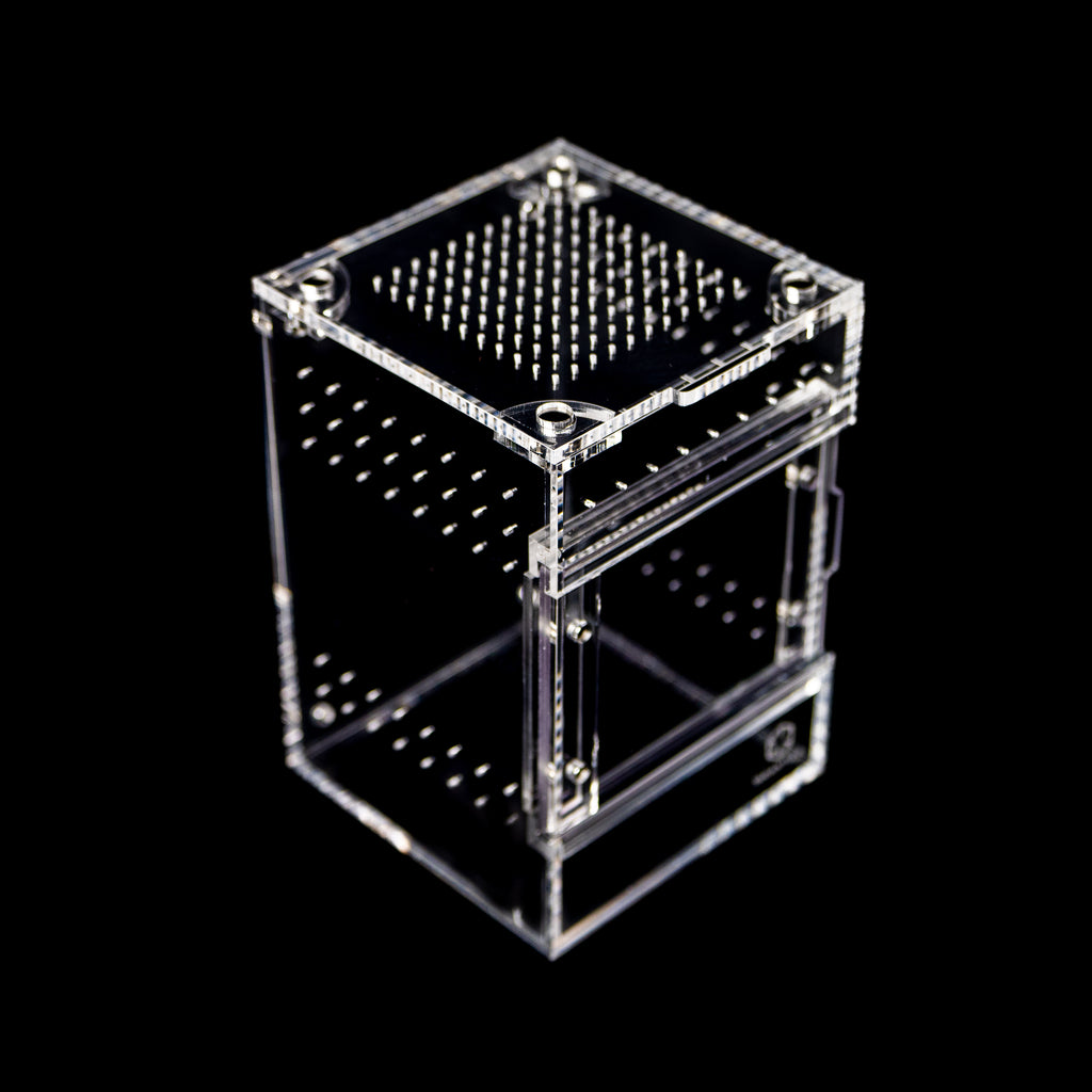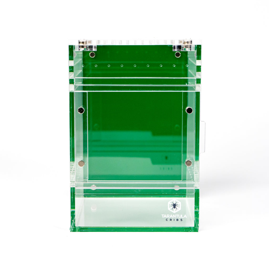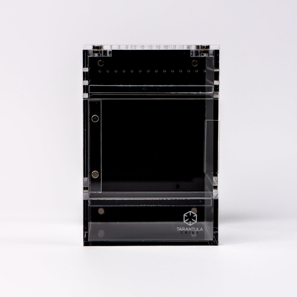 The Treehouse SWITCH (Small) is the ultimate modular enclosure designed for flexibility and style. At 4"x4"x6", this patent-pending Tarantula Cribs original features a front-opening sliding door sealed shut by magnets, making access smooth and secure. Its innovative design allows you to switch between different lids and customize the enclosure to suit your species’ needs.