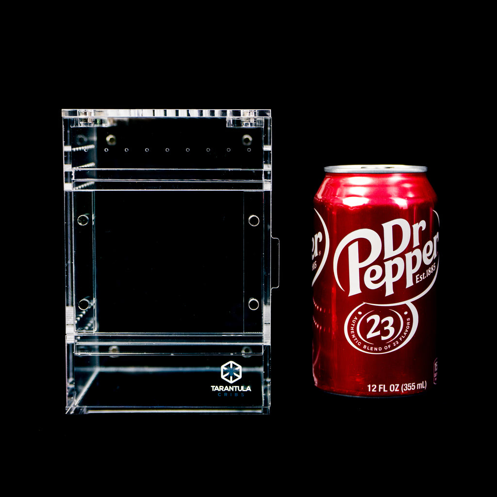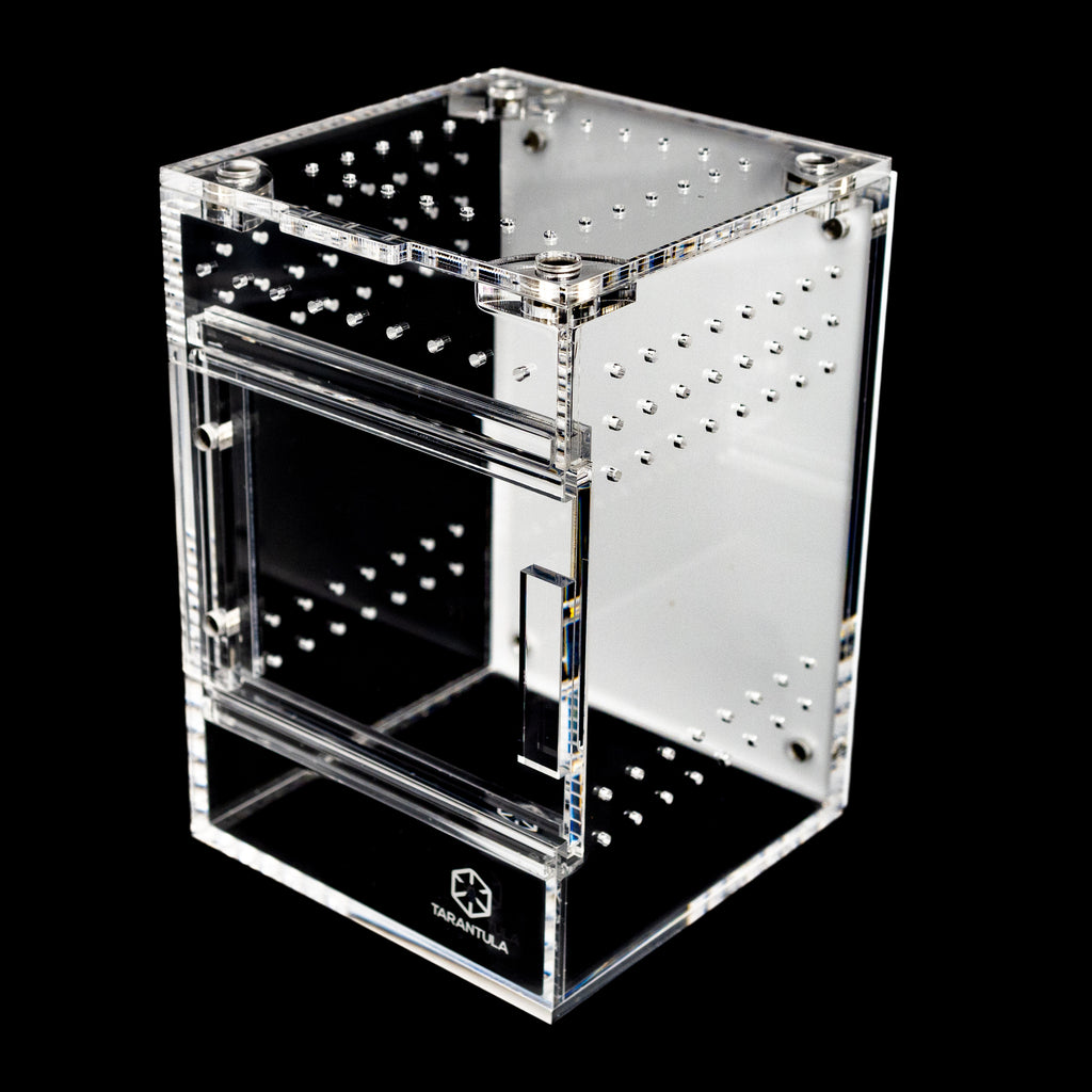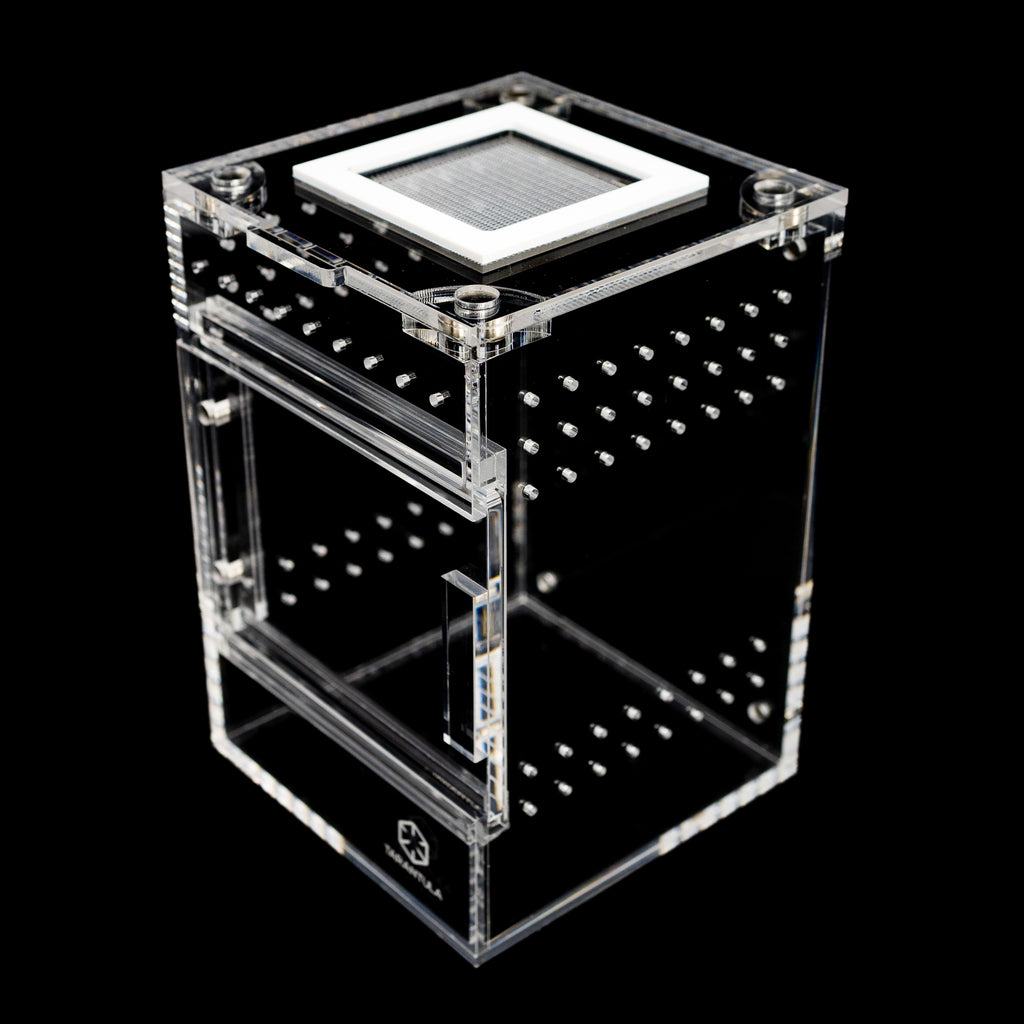 The Treehouse SWITCH (Small) is the ultimate modular enclosure designed for flexibility and style. At 4"x4"x6", this patent-pending Tarantula Cribs original features a front-opening sliding door sealed shut by magnets, making access smooth and secure. Its innovative design allows you to switch between different lids and customize the enclosure to suit your species’ needs.