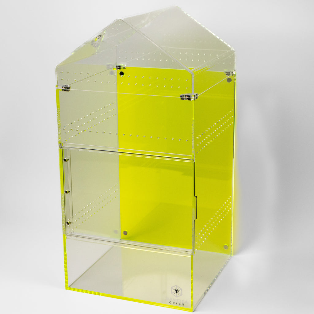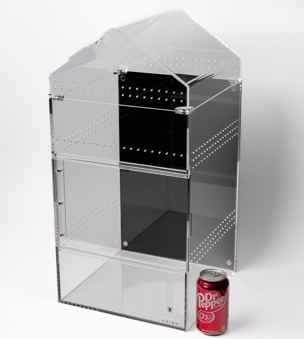 [{"id":521719972145,"handle":"adult-large-spider-enclosures","updated_at":"2025-11-11T06:21:11-06:00","published_at":"2025-10-31T04:27:07-05:00","sort_order":"best-selling","template_suffix":"","published_scope":"global","title":"Adult \/ Large Spider Enclosures","body_html":"\u003cp\u003e\u003cspan\u003eDesigned for adult tarantulas and larger arboreal or terrestrial species, these spacious enclosures combine strength, ventilation, and visibility. Featuring easy access doors and professional-grade acrylic, they make the perfect long-term home for display or breeding setups.\u003c\/span\u003e\u003c\/p\u003e","image":{"created_at":"2025-10-31T04:27:06-05:00","alt":null,"width":3918,"height":3918,"src":"\/\/tarantulacribs.com\/cdn\/shop\/collections\/file_841880e9-b409-48d0-b7d8-5ca4aeb79aa8.jpg?v=1761902827"}},{"id":487727169841,"handle":"all-products","updated_at":"2025-11-11T19:40:22-06:00","published_at":"2024-05-29T23:16:47-05:00","sort_order":"best-selling","template_suffix":null,"published_scope":"web","title":"All Products","body_html":"\u003cp\u003e\u003c\/p\u003e","image":{"created_at":"2024-05-29T23:16:53-05:00","alt":null,"width":1538,"height":920,"src":"\/\/tarantulacribs.com\/cdn\/shop\/collections\/70671a9e9bac72b4464067375bac7b51.jpg?v=1717042613"}},{"id":487727268145,"handle":"arboreal-enclosures-1","updated_at":"2025-11-11T06:21:11-06:00","published_at":"2024-05-29T23:16:47-05:00","sort_order":"best-selling","template_suffix":"","published_scope":"web","title":"Arboreal Enclosures","body_html":"\u003cp data-start=\"0\" data-end=\"54\"\u003e\u003cstrong data-start=\"0\" data-end=\"52\"\u003eArboreal Enclosures – Built for Climbing Species\u003c\/strong\u003e\u003c\/p\u003e\n\u003cp data-start=\"56\" data-end=\"438\" data-is-last-node=\"\"\u003eOur \u003cstrong data-start=\"60\" data-end=\"83\"\u003eArboreal Enclosures\u003c\/strong\u003e are designed for species that thrive off the ground! Featuring \u003cstrong data-start=\"147\" data-end=\"184\"\u003etall, vertically oriented designs\u003c\/strong\u003eand \u003cstrong data-start=\"189\" data-end=\"220\"\u003eoptimized cross ventilation\u003c\/strong\u003e, these enclosures provide the perfect environment for arboreal tarantulas, jumping spiders, and other climbing species. With secure access and superior airflow, they support natural webbing, perching, and exploration.\u003c\/p\u003e\n\u003cp data-start=\"56\" data-end=\"438\" data-is-last-node=\"\"\u003e\u003cem\u003ePro tip: add \u003ca href=\"https:\/\/tarantulacribs.com\/collections\/extension-tubes\" target=\"_blank\" title=\"Extension Tubes\" rel=\"noopener\"\u003eextension tubes\u003c\/a\u003e to your \u003ca href=\"https:\/\/tarantulacribs.com\/search?q=treehouse+switch\u0026amp;options%5Bprefix%5D=last\" title=\"Treehouse Switch\" rel=\"noopener\" target=\"_blank\"\u003eSwitch Enclosures\u003c\/a\u003e or \u003ca href=\"https:\/\/tarantulacribs.com\/collections\/cube-enclosures\" rel=\"noopener\" target=\"_blank\"\u003eCube Enclosures\u003c\/a\u003e to make the enclosures taller!\u003c\/em\u003e\u003c\/p\u003e","image":{"created_at":"2024-05-29T23:17:01-05:00","alt":null,"width":3834,"height":3834,"src":"\/\/tarantulacribs.com\/cdn\/shop\/collections\/fb4ae98829e94c360ae3042d09f56d21.jpg?v=1740008859"}},{"id":521722200369,"handle":"arboreal-web-building-tarantula-enclosures-psalmopoeus-tapinauchenius-and-poecilotheria","updated_at":"2025-11-11T06:21:11-06:00","published_at":"2025-10-31T05:10:23-05:00","sort_order":"best-selling","template_suffix":"","published_scope":"global","title":"Arboreal Web-Building Tarantula Enclosures- Psalmopoeus, Tapinauchenius, and Poecilotheria","body_html":"\u003ch3 data-start=\"252\" data-end=\"307\"\u003e\u003cstrong data-start=\"259\" data-end=\"305\"\u003eArboreal Web-Building Tarantula Enclosures\u003c\/strong\u003e\u003c\/h3\u003e\n\u003cp data-start=\"308\" data-end=\"615\"\u003eDesigned for tree-dwelling web-builders like \u003cem data-start=\"353\" data-end=\"366\"\u003ePsalmopoeus\u003c\/em\u003e, \u003cem data-start=\"368\" data-end=\"384\"\u003eTapinauchenius\u003c\/em\u003e, and \u003cem data-start=\"390\" data-end=\"405\"\u003ePoecilotheria\u003c\/em\u003e, these enclosures prioritize vertical space, airflow, and easy maintenance. Built from premium acrylic with precise cross-ventilation, they provide the perfect environment for climbing, webbing, and display.\u003c\/p\u003e\n\u003cp data-start=\"617\" data-end=\"1041\"\u003e\u003cstrong data-start=\"617\" data-end=\"645\"\u003eChoosing a Size \u0026amp; Setup:\u003c\/strong\u003e\u003cbr data-start=\"645\" data-end=\"648\"\u003eArboreal species thrive in tall enclosures — ideally \u003cstrong data-start=\"701\" data-end=\"756\"\u003ethree to four times the spider’s leg span in height\u003c\/strong\u003e. Provide sturdy anchor points like cork bark tubes or branches to support web structures, along with moderate humidity and strong but gentle airflow. Juveniles do well in medium enclosures, while adults benefit from taller designs with both \u003cstrong data-start=\"998\" data-end=\"1022\"\u003efront and top access\u003c\/strong\u003e for maintenance.\u003c\/p\u003e\n\u003cp data-start=\"1043\" data-end=\"1391\"\u003e\u003cstrong data-start=\"1043\" data-end=\"1058\"\u003eKeeper Tip:\u003c\/strong\u003e\u003cbr data-start=\"1058\" data-end=\"1061\"\u003eArboreal web-builders construct intricate vertical retreats. Avoid disrupting their webbing by using \u003cstrong data-start=\"1162\" data-end=\"1190\"\u003efront-opening enclosures\u003c\/strong\u003e for routine care. If you prefer dual-access models, open the top carefully to preserve their natural web tunnels. The right setup enhances display value and keeps your spider stress-free and secure.\u003c\/p\u003e","image":{"created_at":"2025-10-31T05:10:21-05:00","alt":null,"width":3948,"height":3948,"src":"\/\/tarantulacribs.com\/cdn\/shop\/collections\/file_9cc4ca1b-936f-478f-a095-857db97684ce.jpg?v=1761905422"