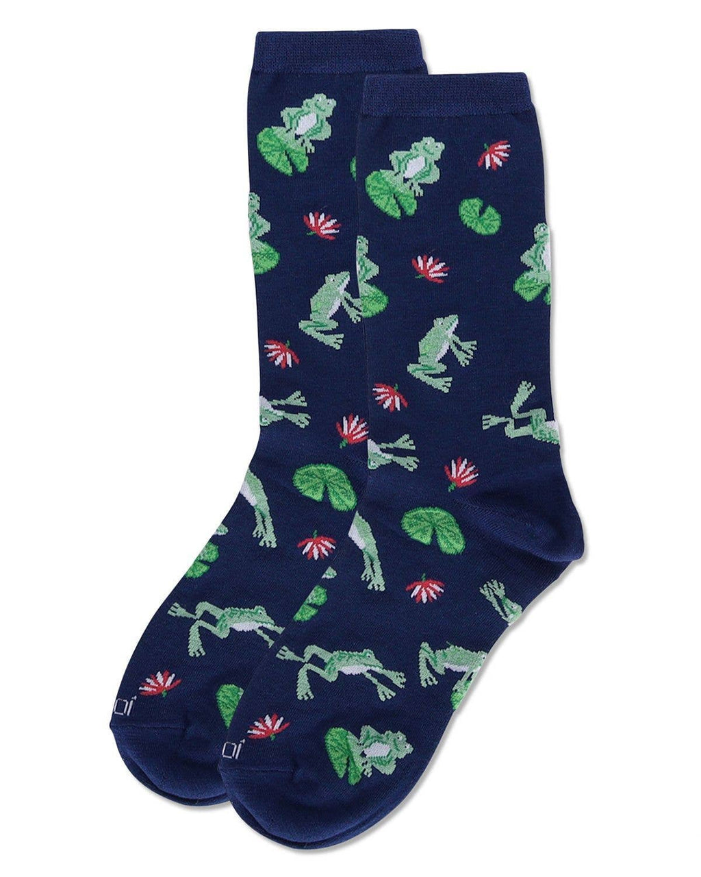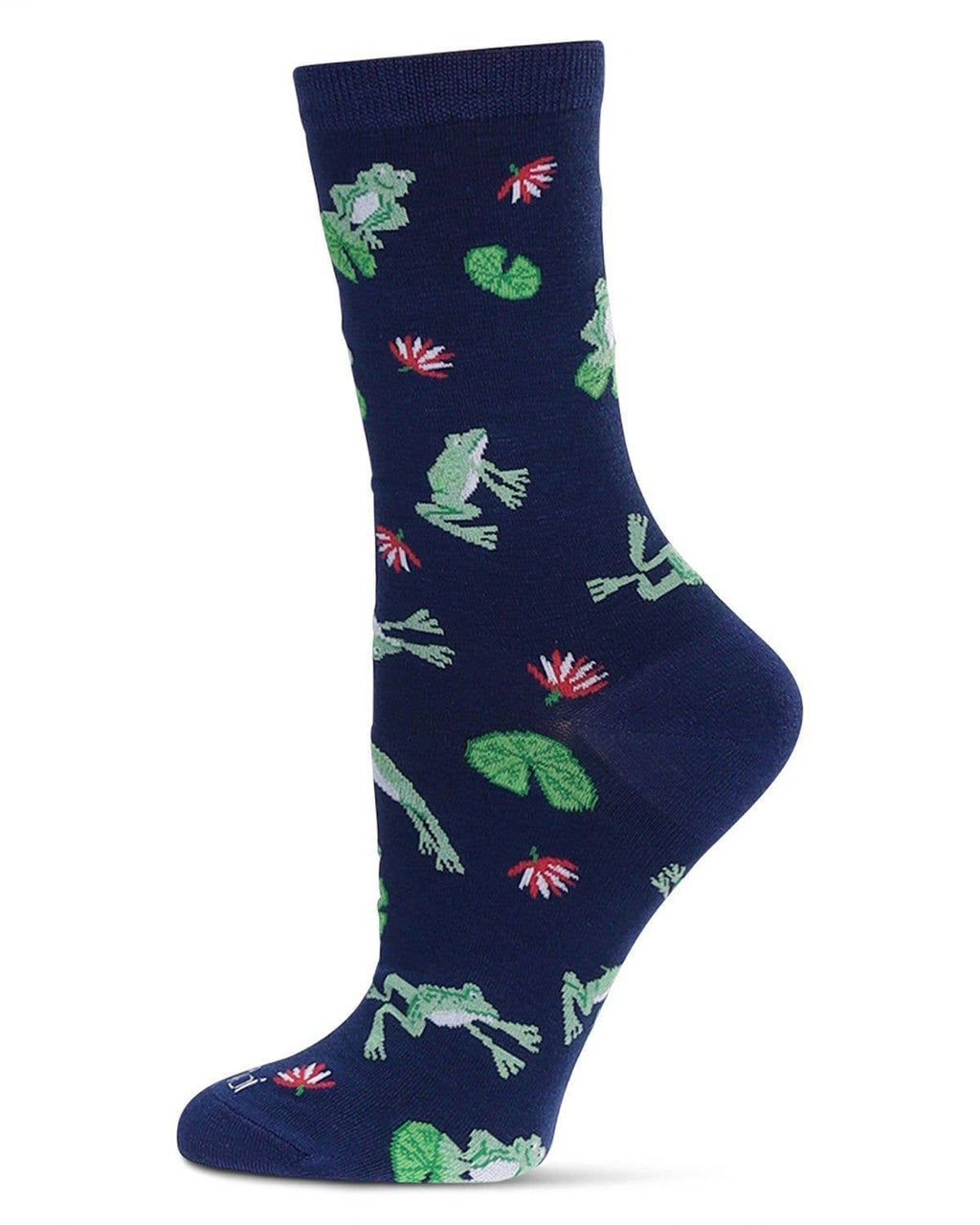 Women's Frogs Bamboo Crew Socks: Navy / 9-11