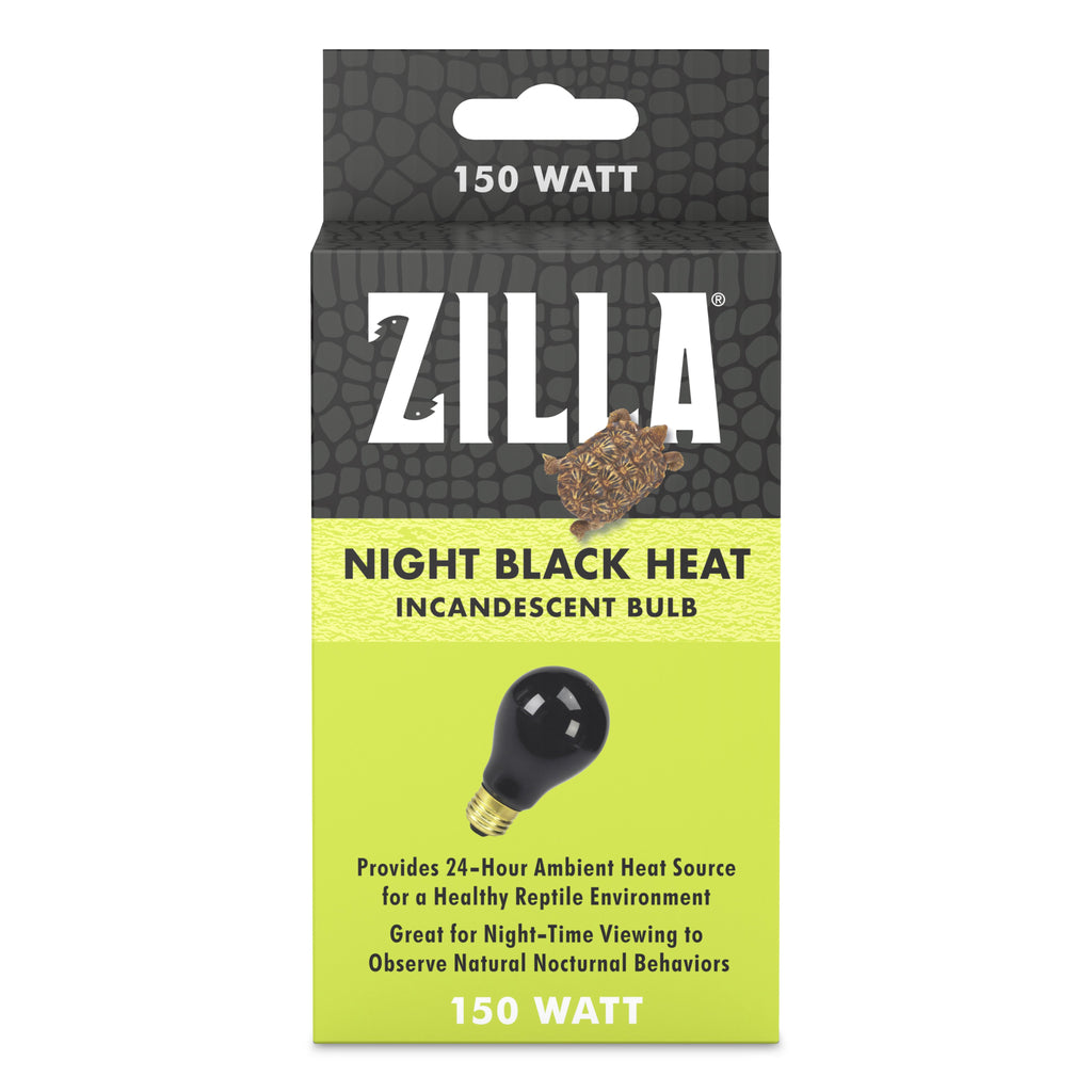 Night Black Heat Incandescent Bulbs. Provides 24-hour ambient heat source for a healthy reptile environment. Great for night-time viewing to observe natural nocturnal behaviors. Ideal for tropical and desert habitats; the bulb provides ambient heat in which the photons emitted by the filament never escape the dark tint, heating the air inside the enclosure to create the warmth needed for a healthy reptile environment. The bulb is made from glass containing rare earth black phosphors, which simulates the moon's natural glow for nocturnal viewing without disturbing the reptile's day/night cycle.